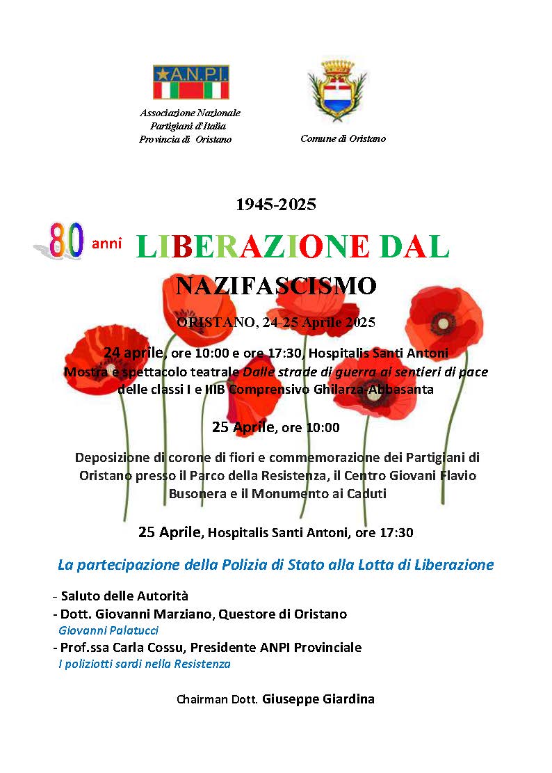 Il programma della Festa della liberazione a cura del Comune di Oristano e dell’ANPI provinciale di Oristano.