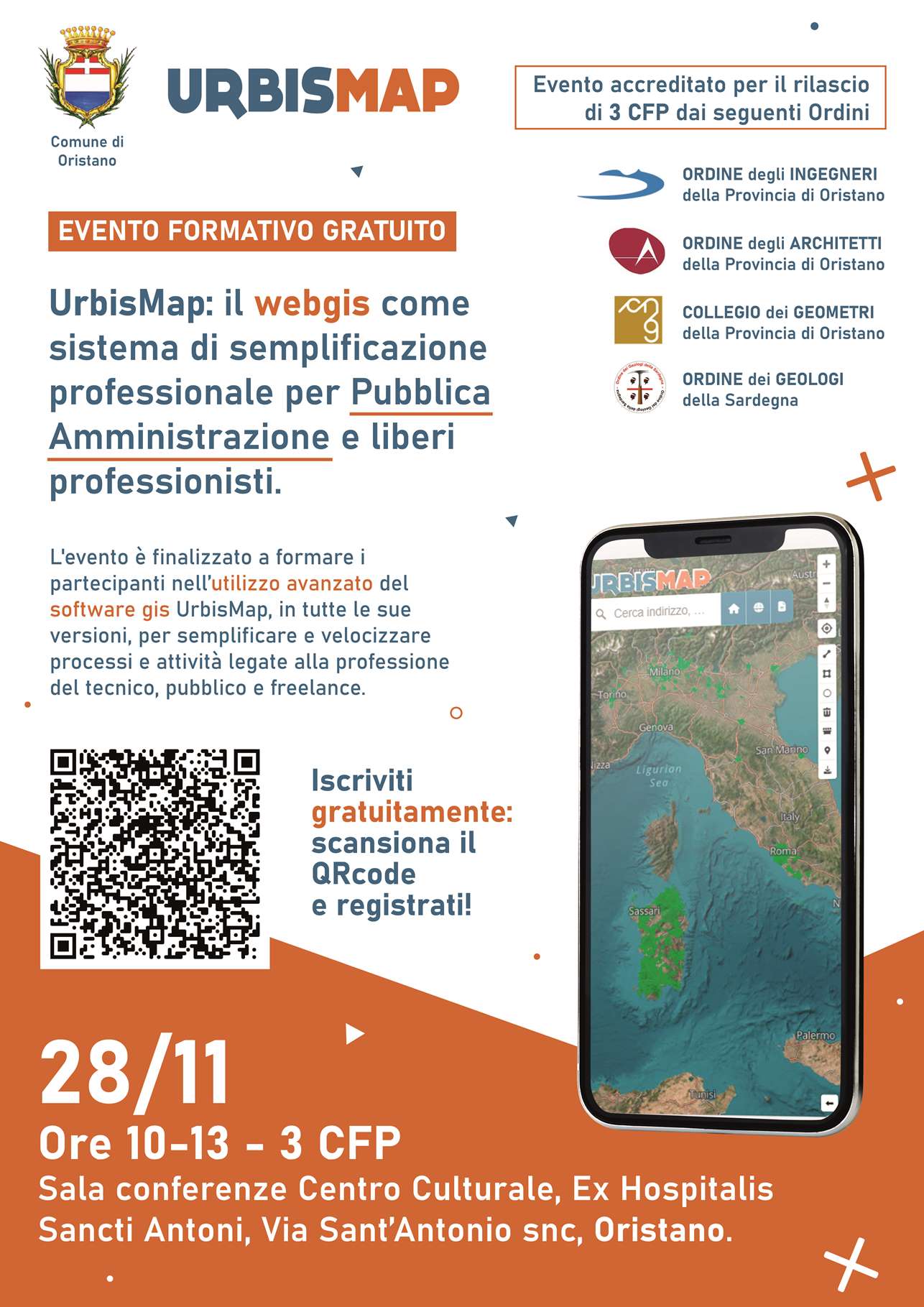 Il 28 novembre, alle 10, all’Hospitalis Sancti Antoni, sarà presentato UrbisMap, il sistema applicativo che il Comune di Oristano ha messo a disposizione di cittadini e tecnici