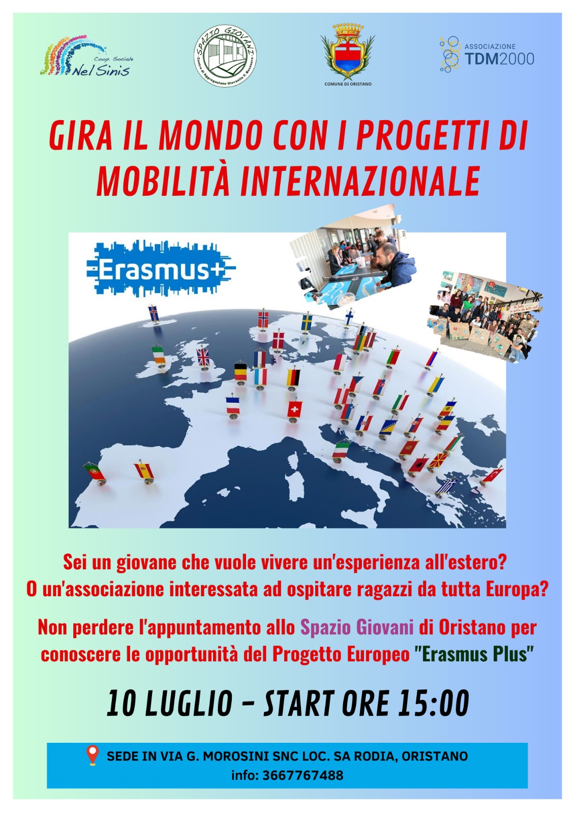 Lunedì 10 luglio alle 15 nei locali dello Spazio Giovani a Sa Rodia un incontro informativo sulla mobilità internazionale giovanile
