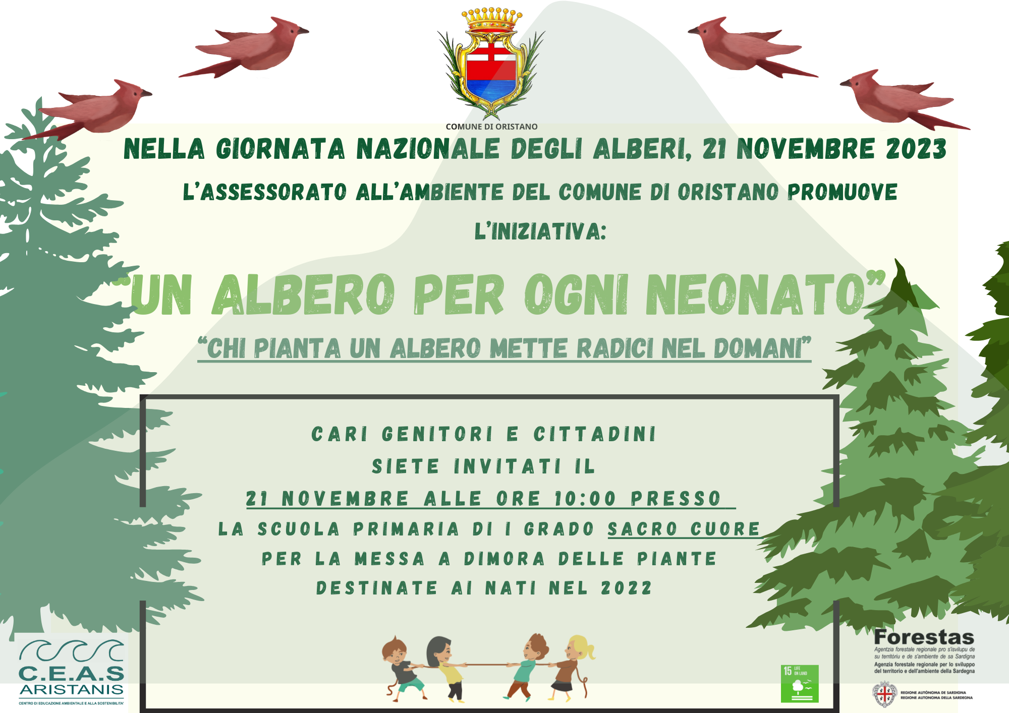 “In occasione della Giornata Nazionale degli Alberi, istituita dalla Legge 10 del 2013, e nel rispetto della Legge 113 del 1992, il Comune di Oristano si unisce all'iniziativa "Un albero per ogni neonato" con una festa speciale presso la Scuola Primaria del Sacro Cuore – spiega il Sindaco Massimiliano Sanna -. L'iniziativa simboleggia il legame indissolubile tra la nascita di un bambino e la crescita di un albero, entrambi simboli di vita, rigenerazione e speranza per il futuro. Ogni partecipante potrà assistere attivamente alla piantumazione di giovani alberi, contribuendo così a un gesto concreto per la salvaguardia del nostro pianeta”.