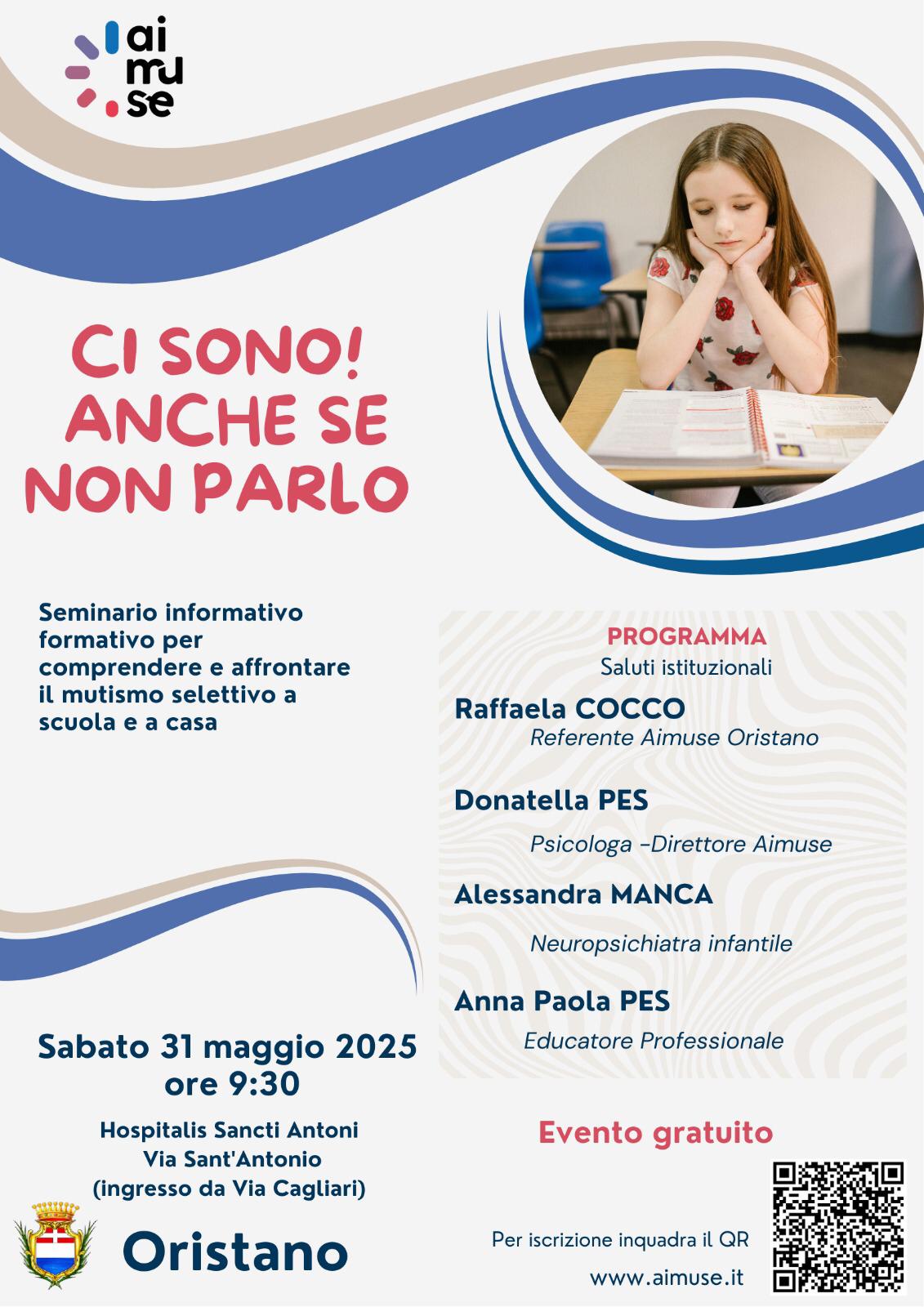 L’Associazione italiana mutismo selettivo, in collaborazione con il Comune di Oristano, organizza a Oristano un seminario informativo e formativo per comprendere e affrontare il disturbo a scuola e a casa.
