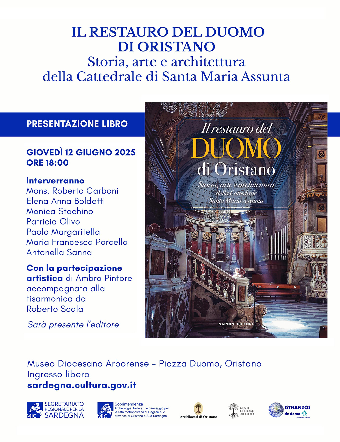 Giovedì 12 giugno, alle 18, il Museo Diocesano Arborense ospiterà la presentazione del volume dedicato al restauro della Cattedrale di Santa Maria Assunta di Oristano.