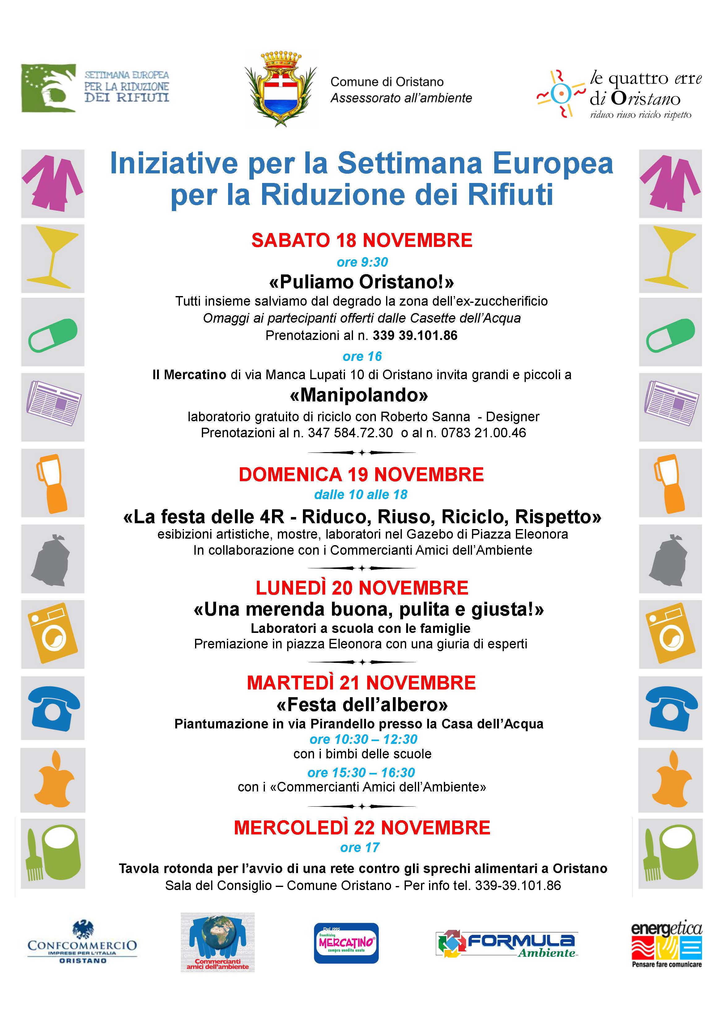 Oristano partecipa alla Settimana per la riduzione dei rifiuti con una serie di iniziative in programma dal 18 al 22 novembre