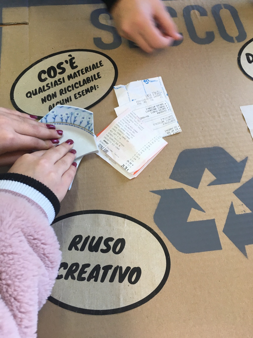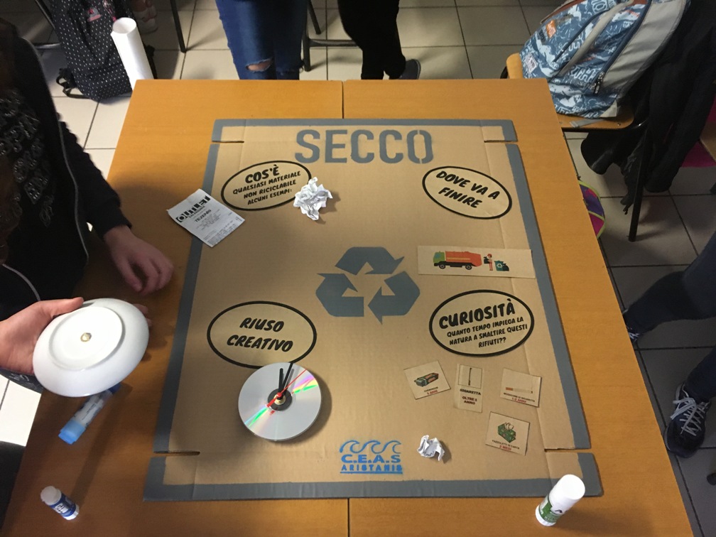 Durante il percorso, articolato in 3 giornate per classe, gli studenti a seguito di una panoramica generale sul concetto di “Sostenibilità” sono stati chiamati a realizzare 5 pannelli raffiguranti le 5 tipologie di rifiuti (organico, secco, plastica, carta e cartone, vetro e alluminio), inserendo tutte le informazioni necessarie per un corretto conferimento, da esporre presso l'istituto. Nella terza giornata attraverso un gioco a squadre, i ragazzi hanno dovuto conferire nel modo corretto più oggetti possibili nel tempo stabilito.