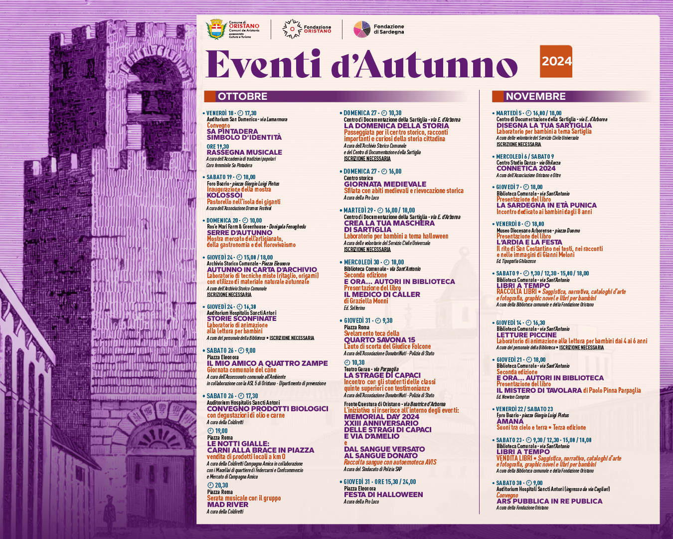 La rassegna culturale, organizzata dal Comune di Oristano con la collaborazione della Fondazione Oristano, da metà ottobre alla fine di novembre propone un ricco calendario di eventi.