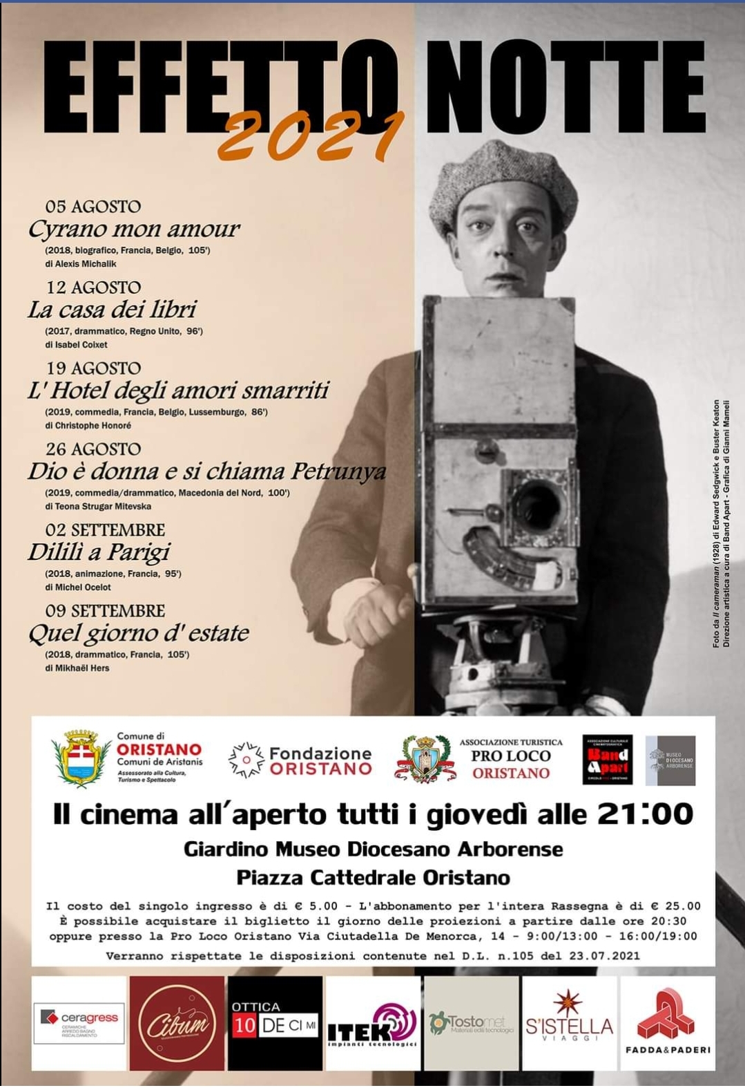 Da giovedì 5 agosto prende il via la rassegna del cinema all’aperto “EFFETTO NOTTE”, organizzata dal Comune di Oristano e dalla Pro Loco in collaborazione con la Fondazione Oristano e Band Apart.
