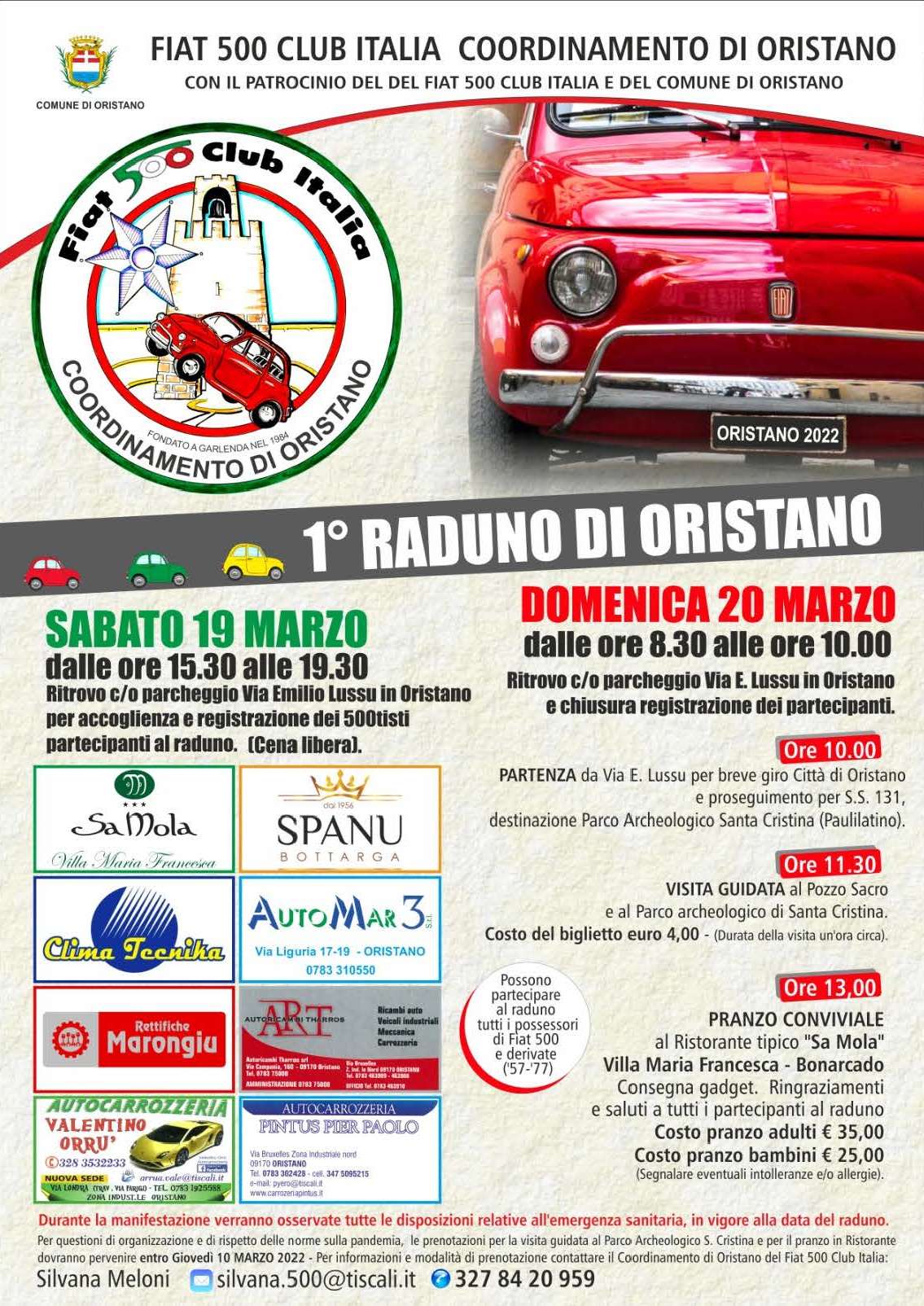 Il 19 e 20 marzo si tiene a Oristano il 1° raduno ufficiale delle Fiat 500, promossa dal Fiat club Club Italia – Coordinamento di Oristano con il patrocinio del Comune di Oristano.