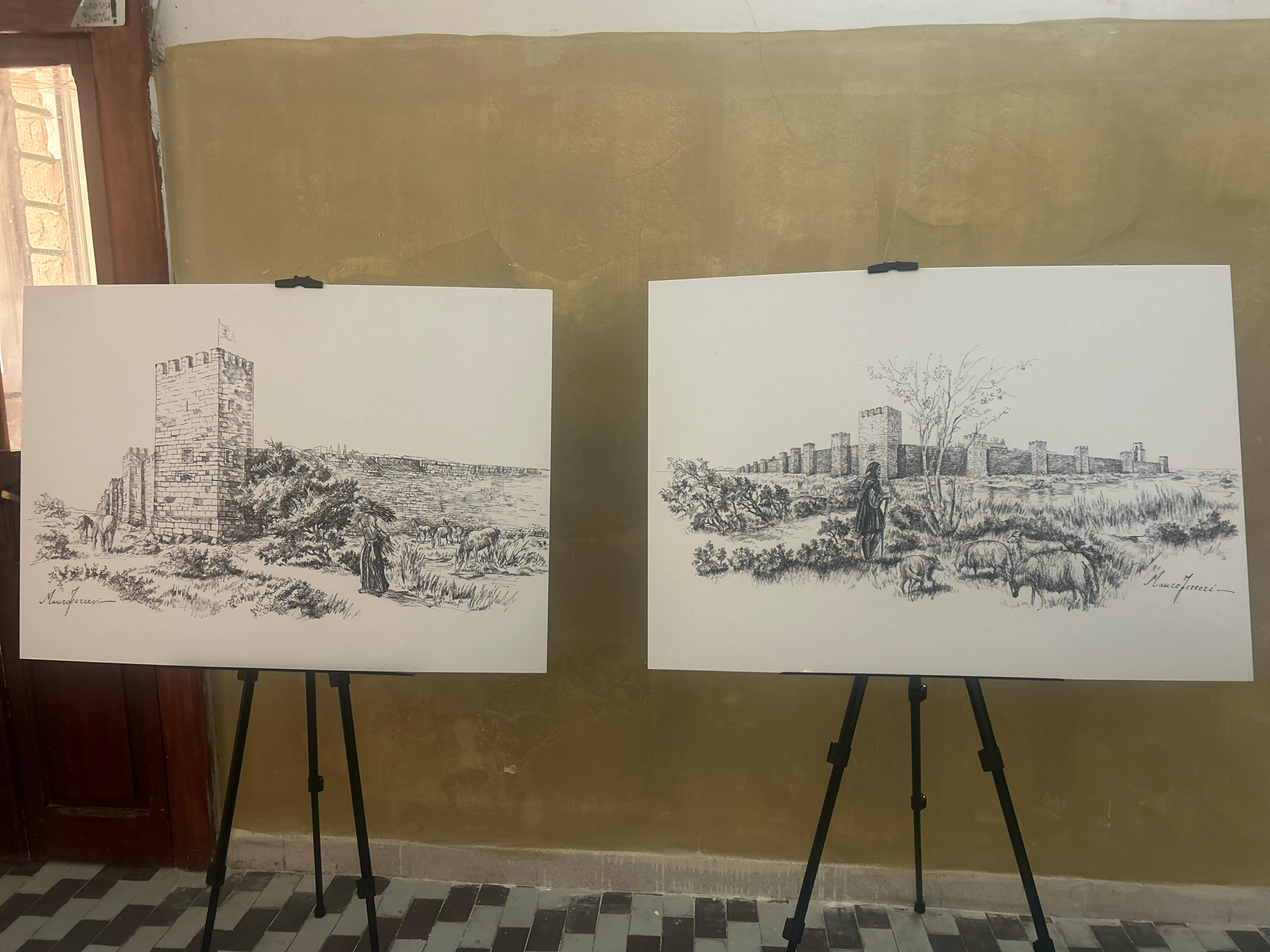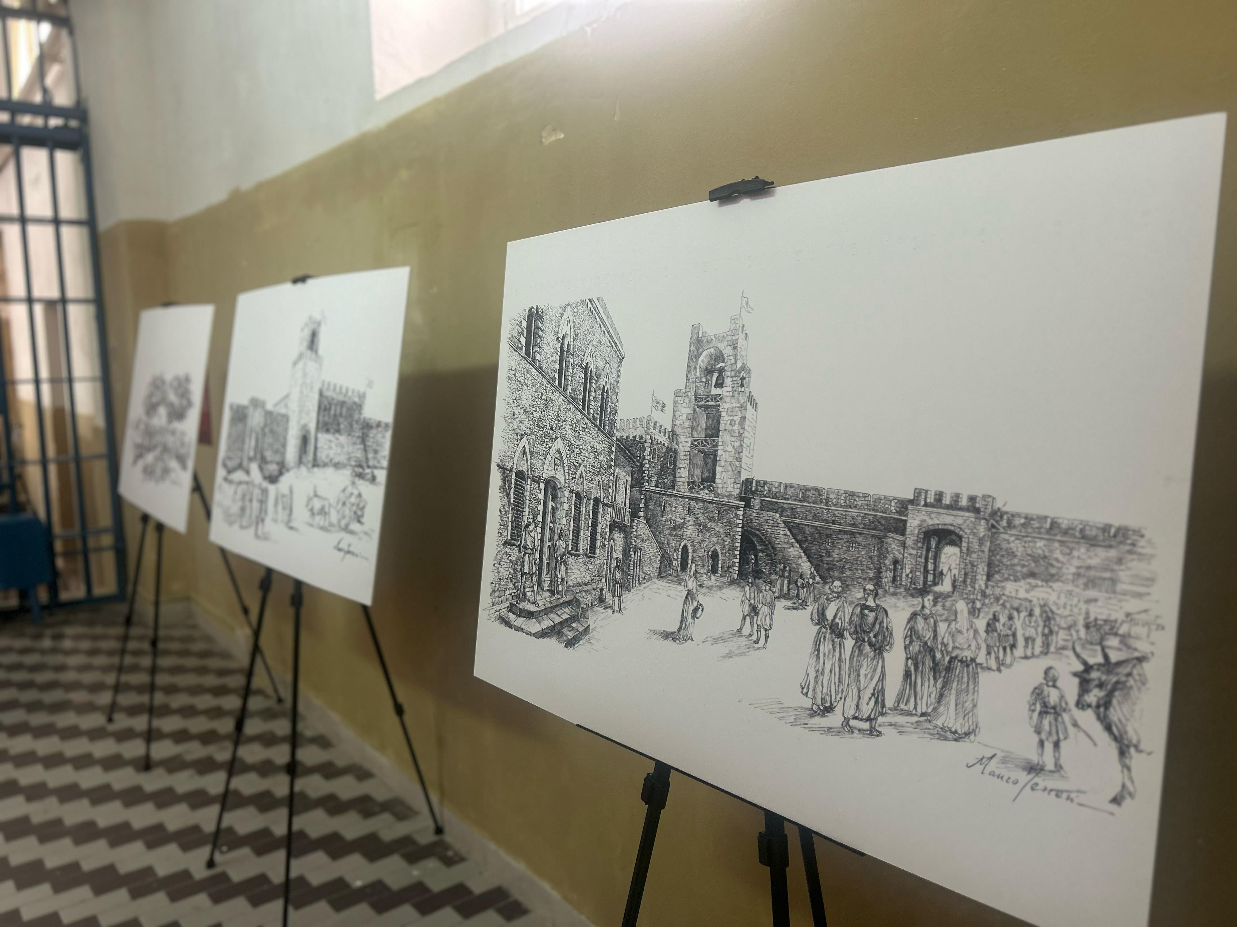 La prima mostra, dal titolo “Oristano medievale. La piazza, la reggia, il castello e altre meraviglie. Un dialogo tra Mauro Ferreri e Gabriele Pettinau”, è dedicata alla memoria del ricercatore indipendente Nadir Danieli (1992-2024). Ospitata nell’atrio dell’ex carcere, corrispondente alla Reggia Giudicale, l’esposizione mette in rapporto, tramite una selezione di dieci tavole illustrative dedicate alla reggia giudicale e alla forma della città medievale, due figure di studiosi della storia di Oristano, diversissimi tra loro per età e formazione, ma uniti dalla convergenza delle tematiche delle loro ricerche: Mauro Ferreri (1957-2013) e Gabriele Pettinau (1990). Le due serie di lavori ricostruttivi, pur realizzati a trenta anni di distanza l’una dall’altra e con tecniche differenti, finiscono per completarsi e integrarsi perfettamente.