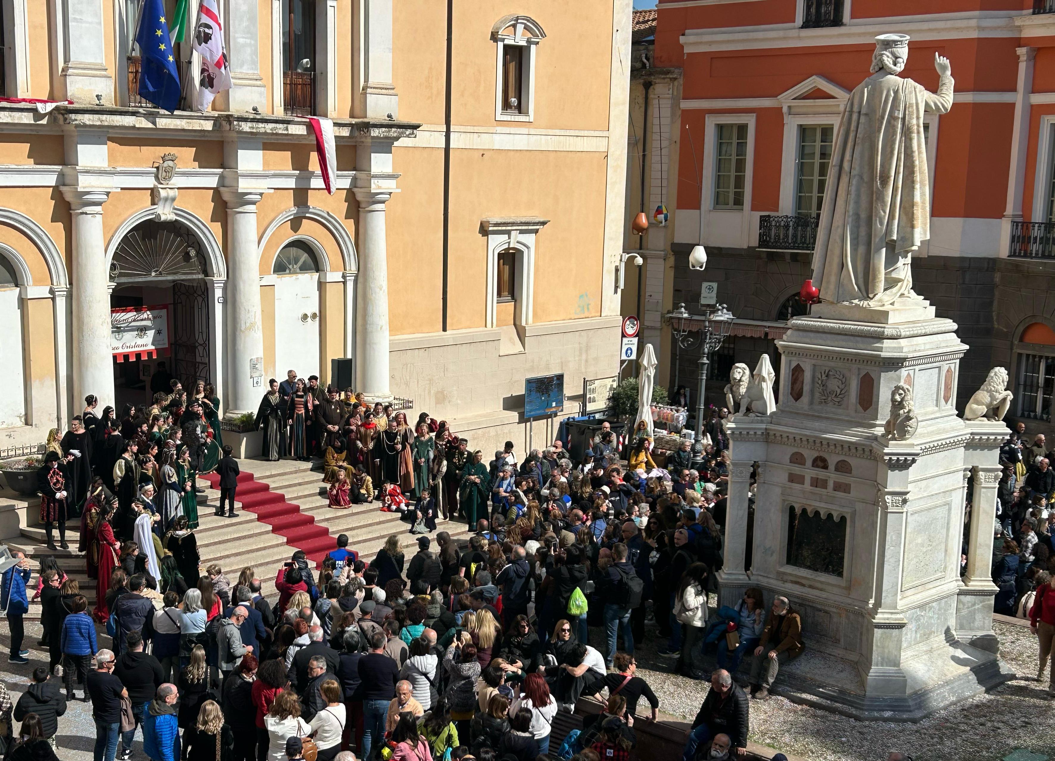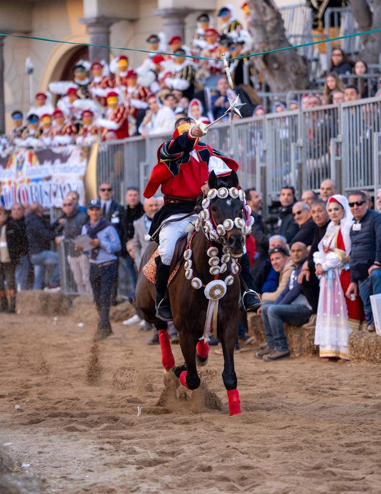 L’ultima giornata della Sartiglia 2025, organizzata dal Gremio dei Falegnami, è stata un susseguirsi di emozioni, dalla suggestiva cerimonia della vestizione fino allo spettacolo della Corsa alla Stella. Grande protagonista Salvatore Aru, che ha vissuto una giornata memorabile. Dopo la vestizione, l’attenzione si è spostata su via Duomo, dove Aru ha offerto una discesa impeccabile, veloce e precisa, centrando la stella tra il boato della folla. Un successo che ha entusiasmato il Gremio e il pubblico, che gli ha tributato applausi a scena aperta. Il majorale en cabo del Gremio di San Giuseppe, Antonello Fenu, lo ha premiato davanti a una folla in visibilio.