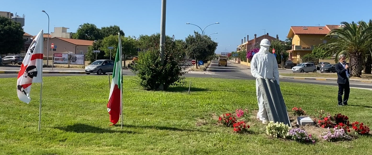 Momenti di autentica commozione questa mattina nella grande rotonda di Via Petri, nei pressi delle sedi della Prefettura e della Questura di Oristano per lo scoprimento di una statua e una insegna in ricordo delle vittime dell’amianto.